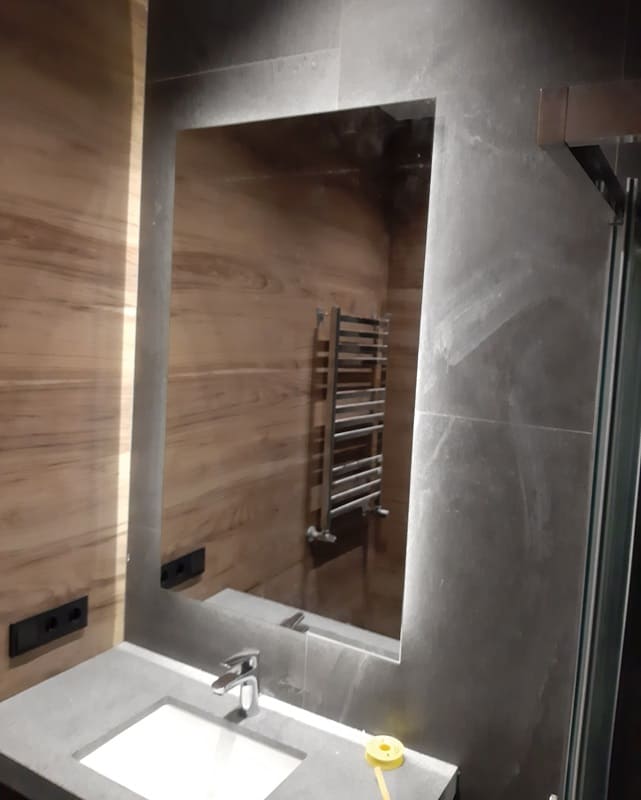 - Обработка: шлифовка и полировка кромки, еврокромка, фацетирование; сверление в зеркале отверстий (потребуются для его монтажа), нанесение антивандальной пленки (позволит избежать сколов, царапин и других неэстетичных повреждений зеркала).